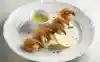 филе цыплёнка, запанированное в сухарях Панко, подаётся с кисло‑сладким соусом